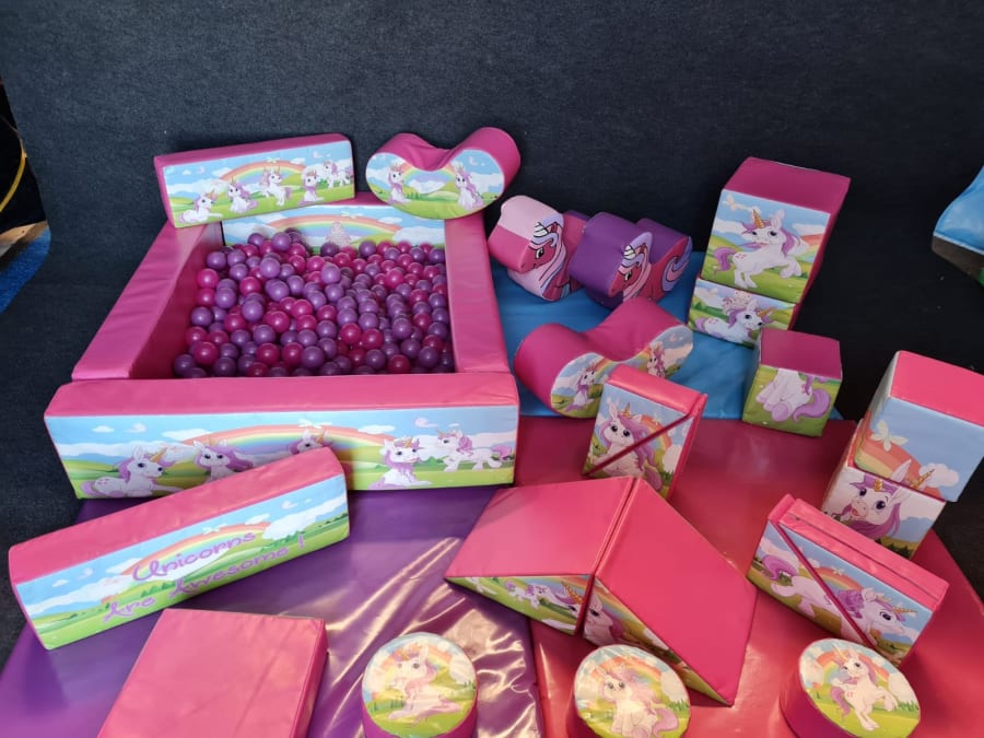 Includes: Mats, Ball Pit, Jelly Bean Rockers & Soft Play Unicorns